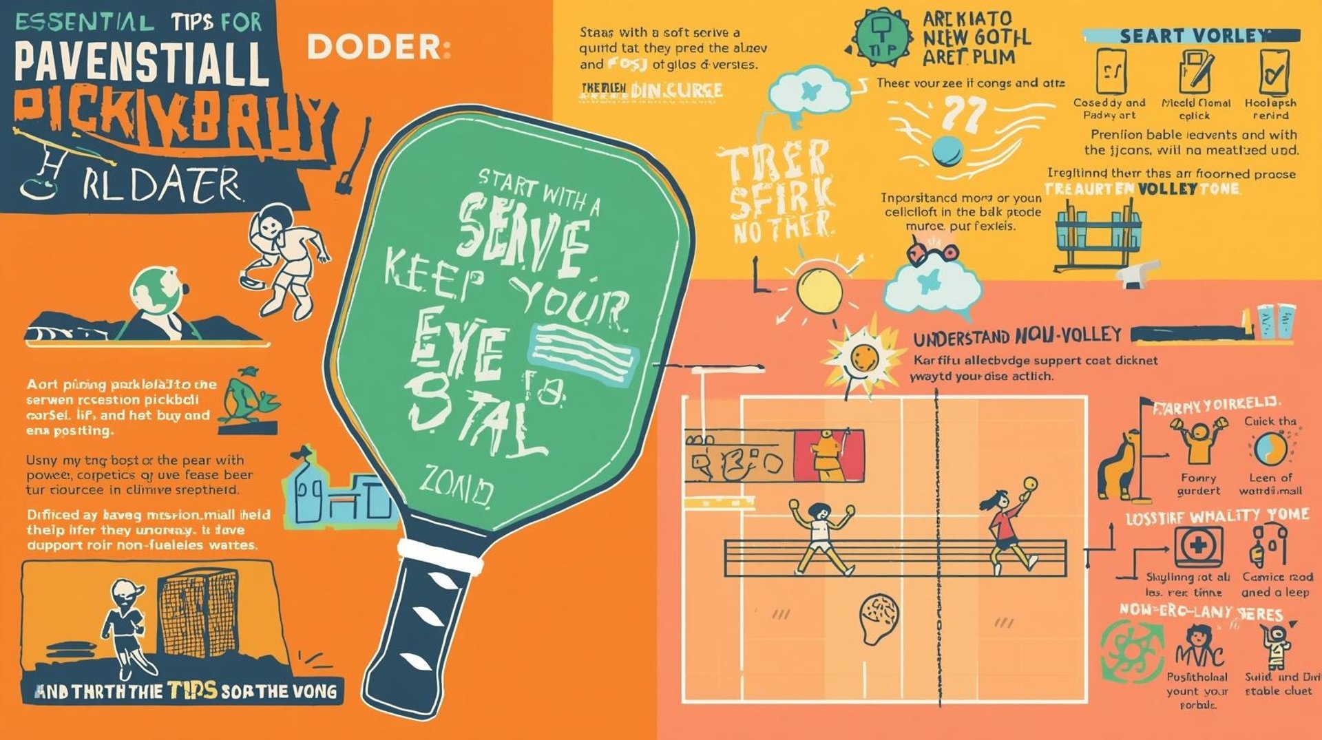 Dinking (soft volleys close to the net) is where real strategy happens. Control, placement, and patience win points here — not brute strength.